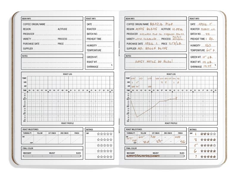 33 Roasts is a one-of-a-kind roasting log that provides an easy way to record the coffee beans you roast in an orderly and professional format. With my coffee roasting notebook, it's easy to keep your notes and coffee roast profiles in one place for posterity, bound in a softcover format that lays flat and wears well. Best of all, it never runs out of batteries!!